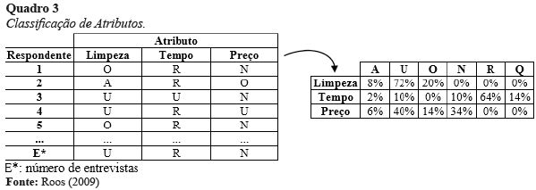A combinação das respostas para a forma funcional e disfuncional permite a classificação dos atributos, via perguntas que são extraídas para cada cliente entrevistado, conforme o quadro 3.