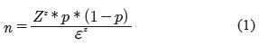 A partir da fórmula apresentada para amostras consideradas infinitas (acima de 100.000), foi possível calcular o número de entrevistados.