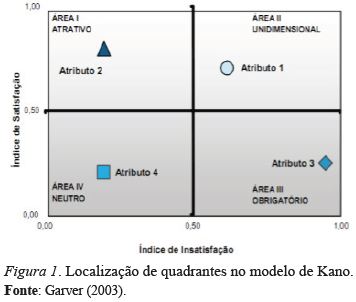 O modelo de Kano é utilizado para classificar alguns atributos do produto e/ou serviço (Roos et al., 2009). Kano et al. (1984) apresentam modelo com atributos de desempenho superior e/ou inferior, que identificam atratividade, e obrigatoriedade. Se houver grau de desempenho suficiente, não trará satisfação), unidimensionalidade (maior será a satisfação do cliente e vice-versa, quanto maior o grau de desempenho), neutralidade (não resulta em satisfação ou insatisfação no cliente) ou reversibilidade (alto grau de desempenho que pode resultar na insatisfação (e vice versa, o baixo grau de desempenho resultando na satisfação)).